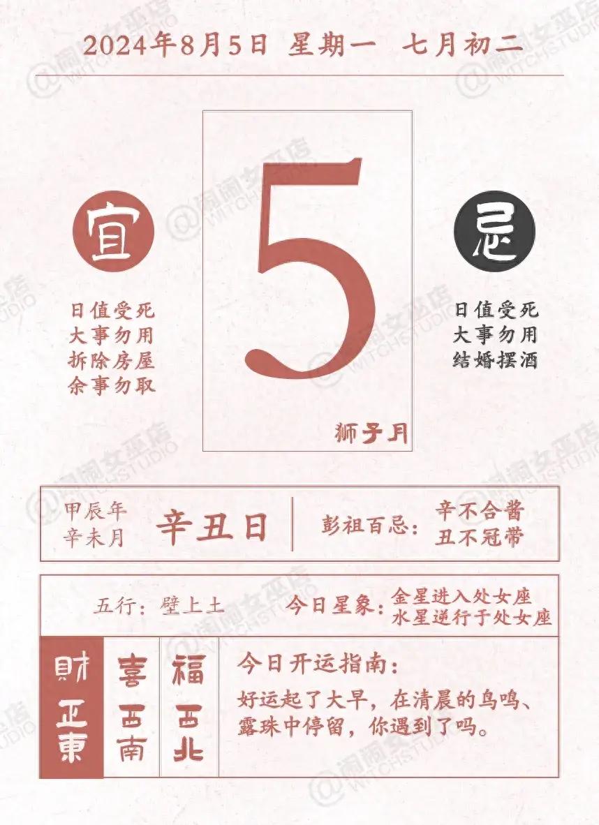 今天會有一些小小的財運。投資容易獲利,即便不是高額回報,也算是小小的好運。部分人容易中獎,比如再來一瓶或買彩票中個小獎。可以把這當作生活樂趣,但不可過分依賴。