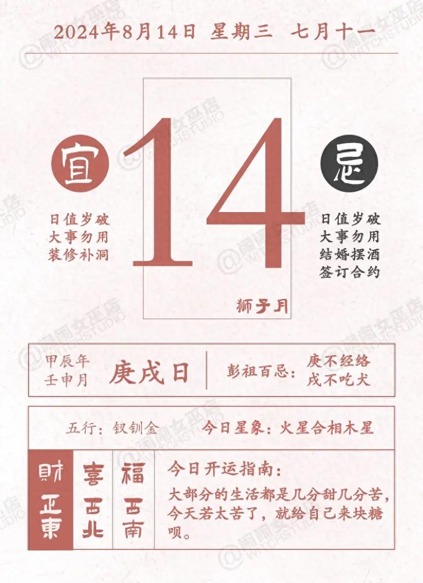 今日直覺和情緒感知力強。生活和職場中的人際關係較爲和諧,大家能互相體諒和妥協。得益於增強的同理心,合作效率也提高了。比如,在與同事溝通時,你能更準確地理解他們的需求和感受,從而達成更有效的合作。