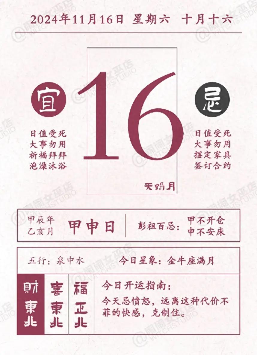 今天的你需要療愈身心和強健體能。建議你把生活和工作上的瑣事都放到一邊,好好關注自己生理和心理的健康狀況。建議你最近少喫外賣,爭取自己做飯,研究一些健康食譜,好好調養身體。