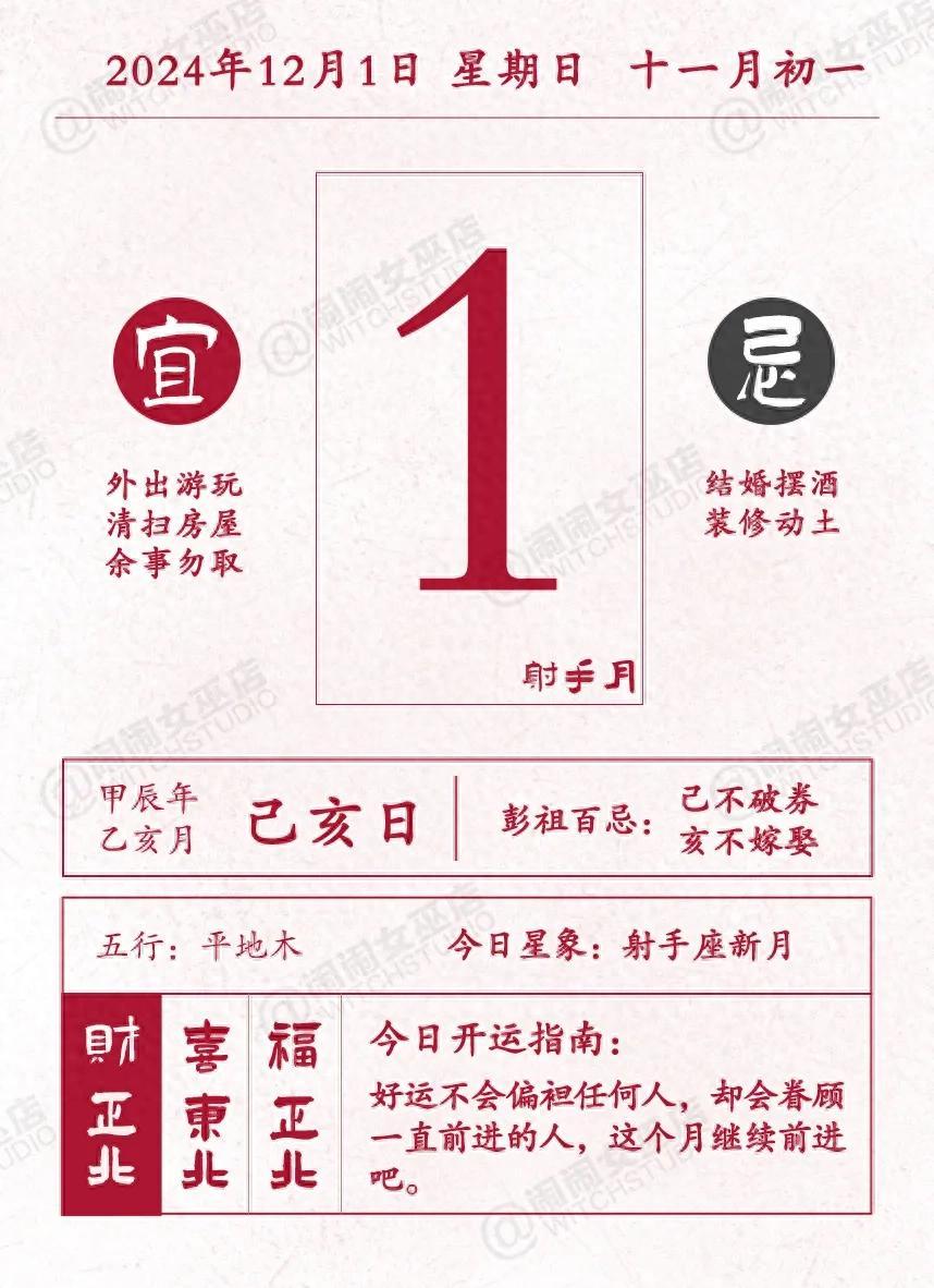 今天是斷舍離的好日子。你會扔掉囤積的物品,清理過期的食物和藥品。如果時間允許,你也會在今天進行大掃除,甚至會打掃犄角旮旯的衛生。在清理物品的過程中,你也會想起一些不開心的往事。不過,最後會像扔垃圾一樣把負面情緒都扔掉。