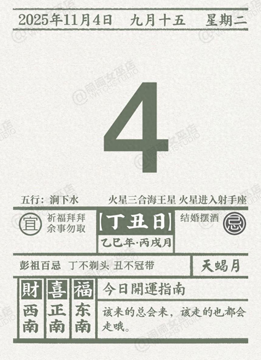 今天,你會迎來一種結束。可能是情感關係或合作關係的結束,也可能是一個項目的結束收尾,進入款項結算階段。任何拖沓、怠慢都不適合出現在今天。如果你要面臨人際關係的“結束”,建議你採用瀟灑的姿態。
