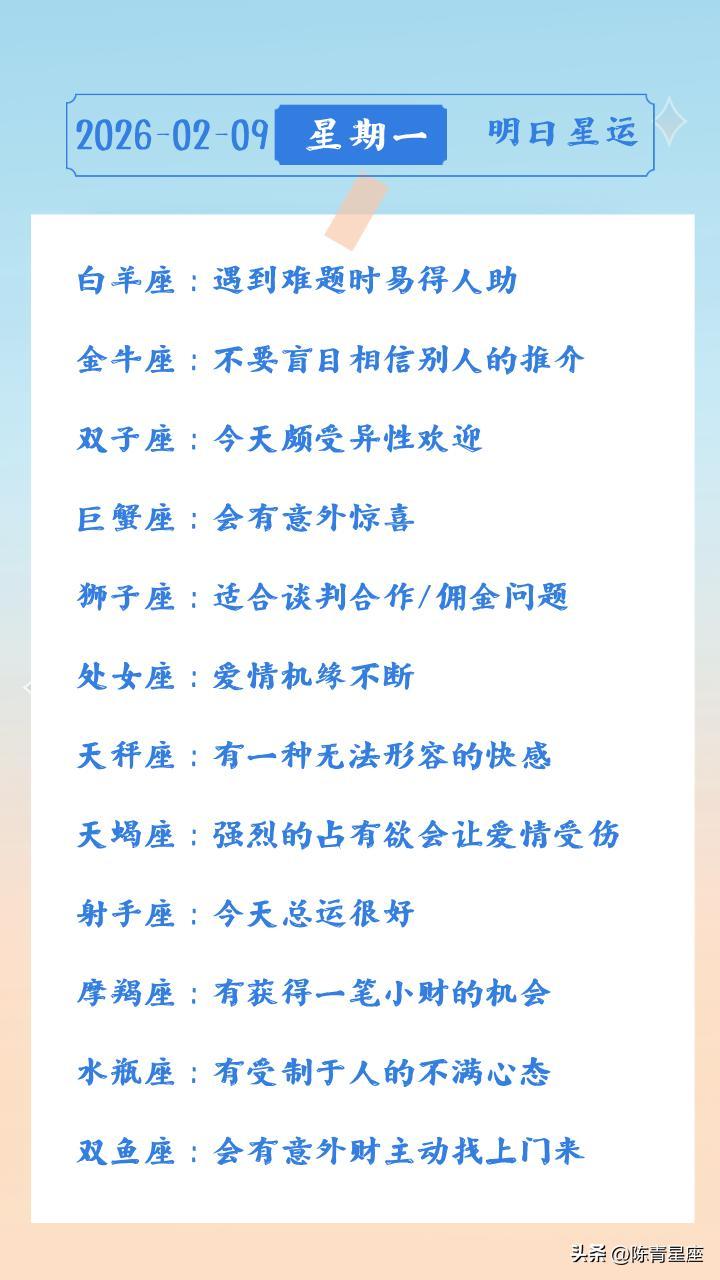 陳青今日星座運勢2026年2月9日(圖片版)