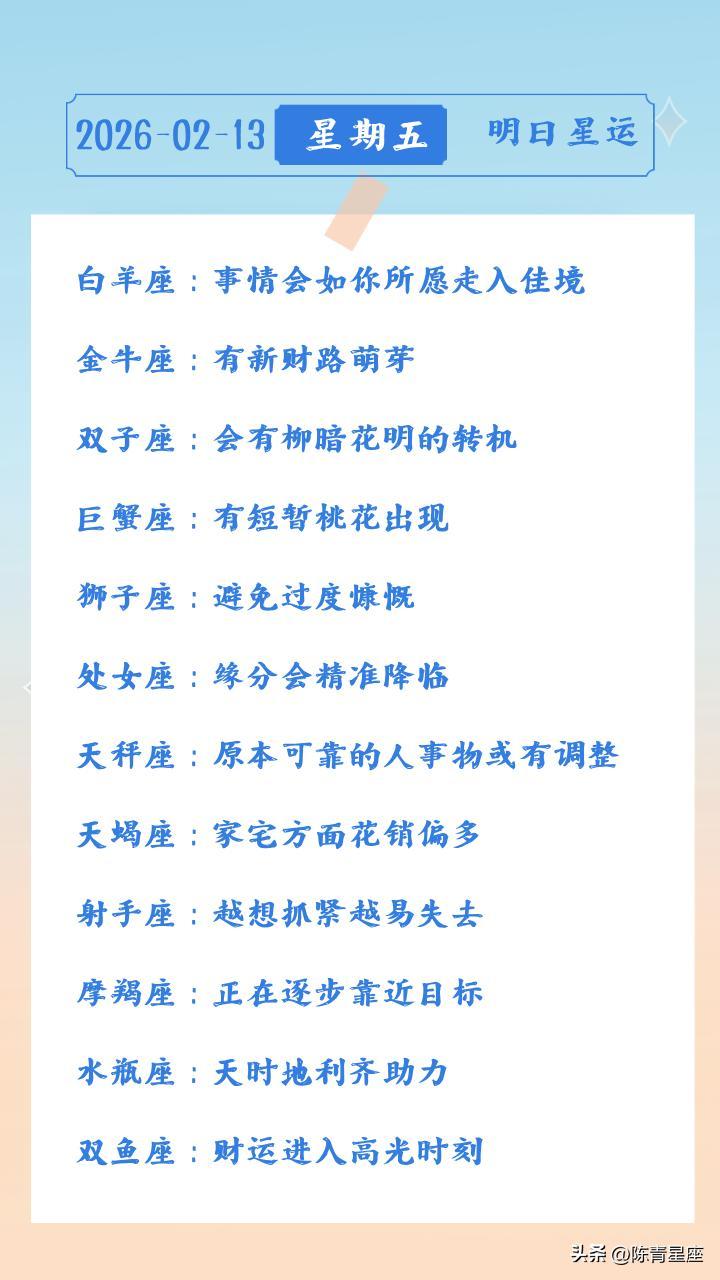 陳青今日星座運勢2026年2月13日(圖片版)