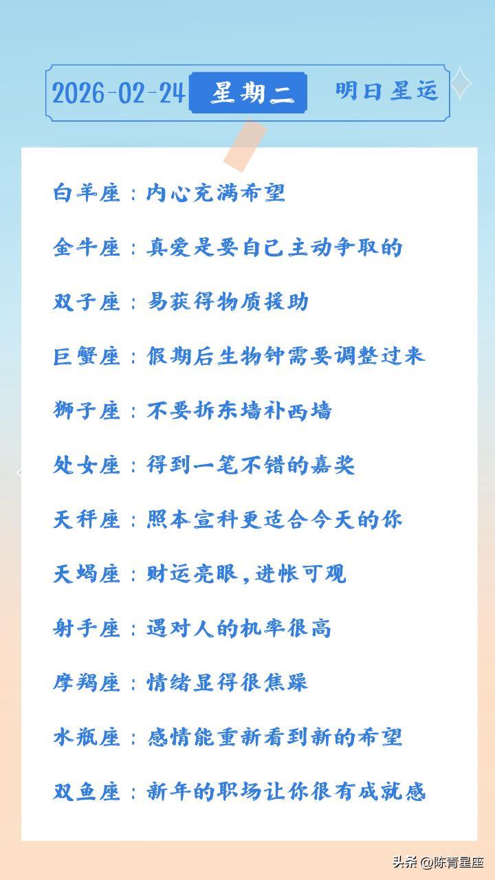 日運 |克里斯 2026年2月24日 十二星座運勢