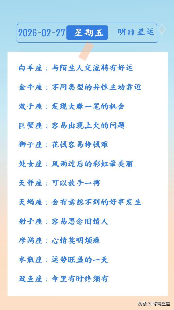 明日運勢|DH.APP 2026年2月27日 十二星座運勢