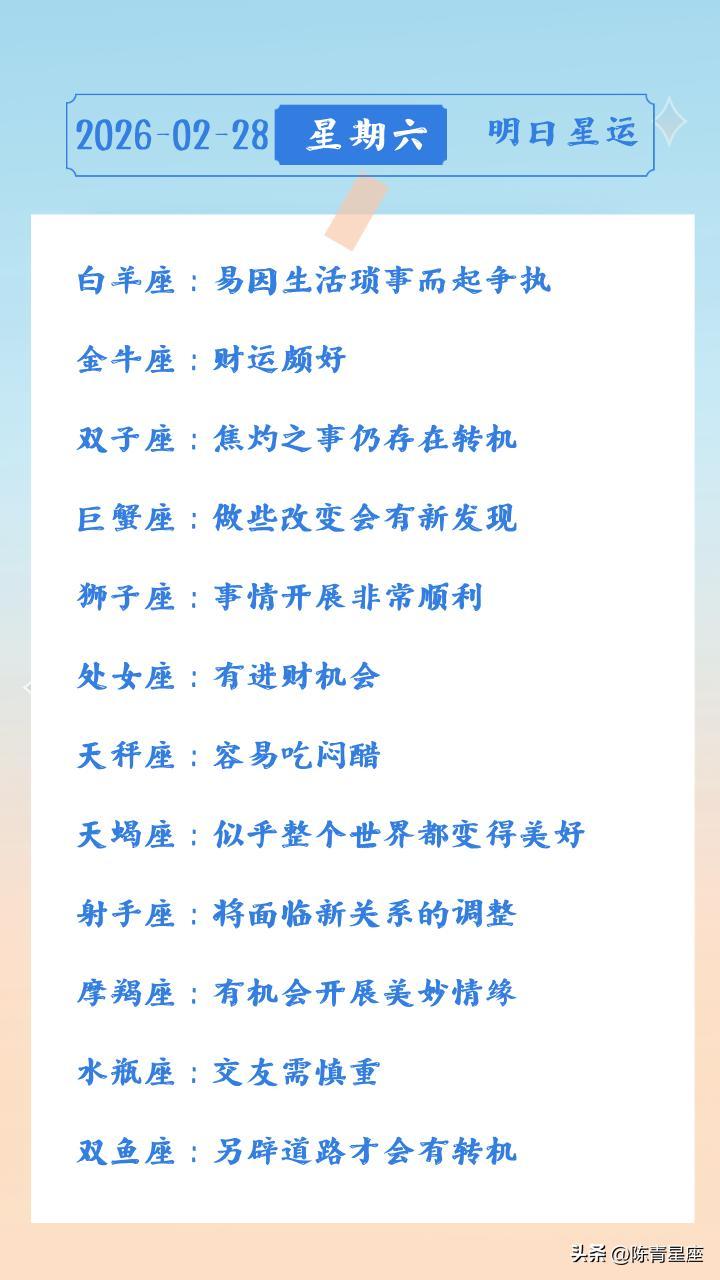 陳青今日星座運勢2026年2月28日(圖片版)