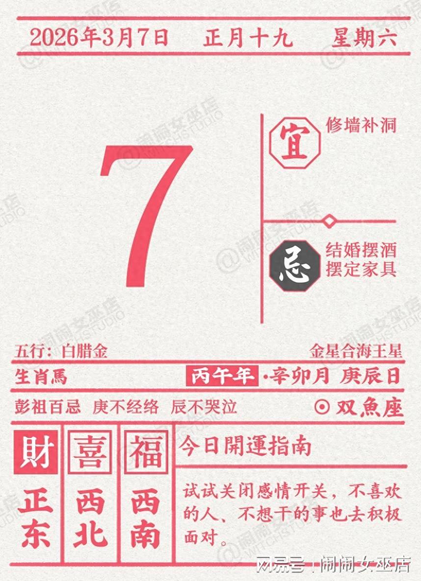 今天建議你注意廚房安全。可能會有某些廚具/炊具突然故障,也可能是管道堵塞,出現異味。若你有時間,建議打掃一下廚房的衛生,清潔冰箱和爐竈。也要提醒今天做飯的人,小心使用刀具,切勿割傷自己。