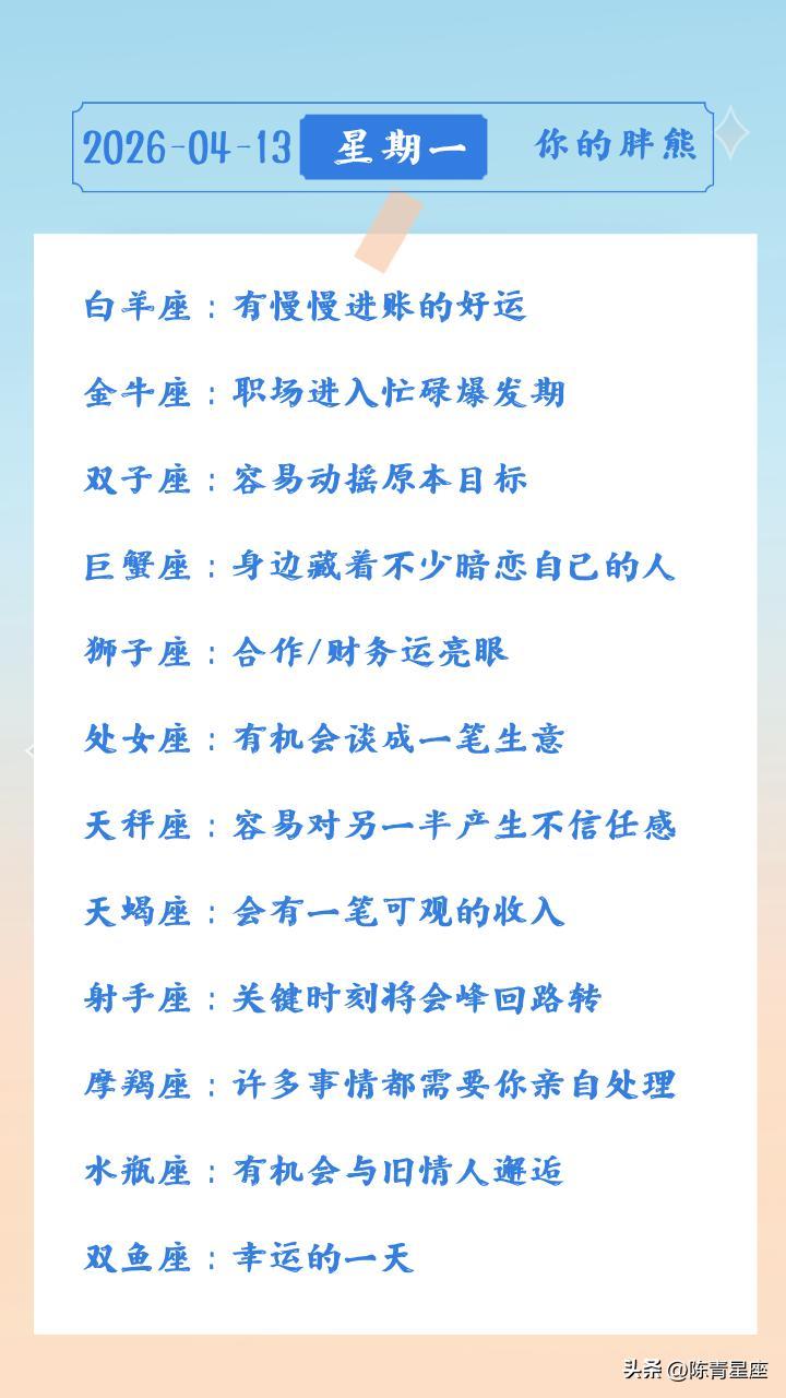 日運 |克里斯 2026年4月14日 十二星座運勢