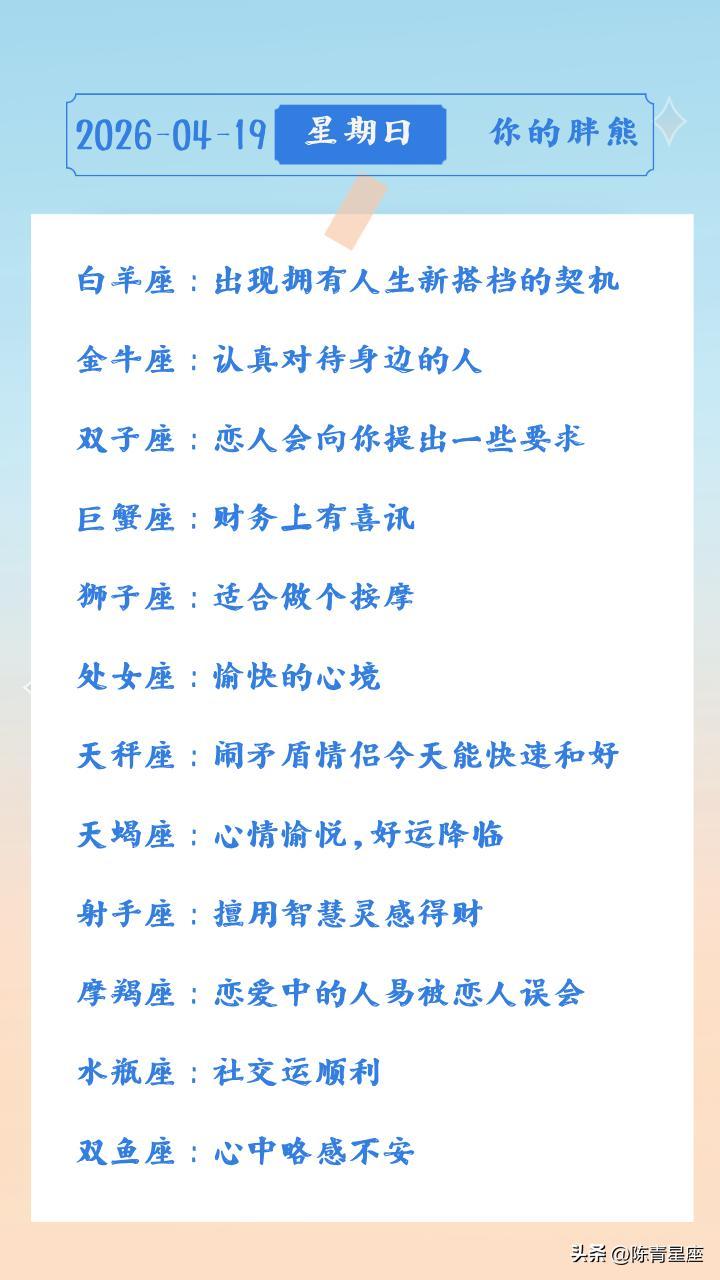 日運 |克里斯 2026年4月19日 十二星座運勢