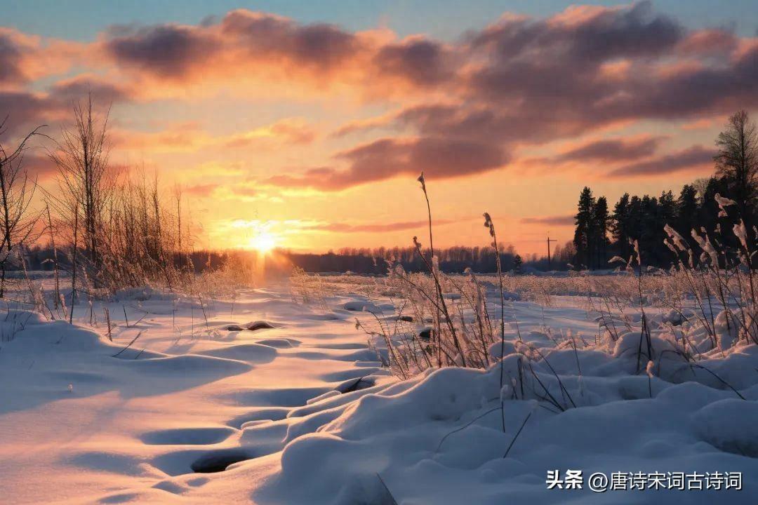 冬天的黃昏,一聲畫角在城樓響起,庭院之上,浮現出一彎新月,月光的清輝,映照着半邊院子,微寒卻沾染了詩意。山水之間,冰天雪地,這一個小小的村莊,也是如此動人啊。幾間茅屋,一處小院,圍着一帶竹籬笆。淡淡的煙霧籠罩着冬日人家,一眼望去,野草枯黃,這偏遠的村莊,寧靜悠遠,真是一幅現成的水墨畫啊!