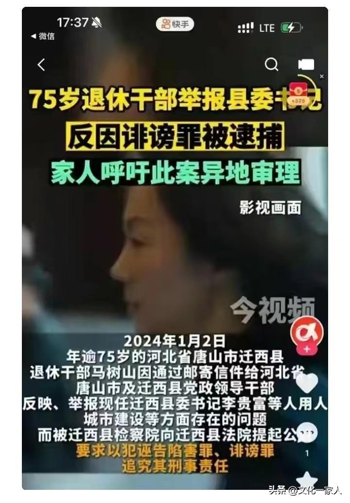 一位七十五歲的退休老幹部,曾經資助貧困學生,被評爲《遷西道德模範好人》的馬叔山,因爲實名舉報縣委李書記被抓起來,而且神速地拘留、逮捕、提起公訴,就等着開庭審判了。