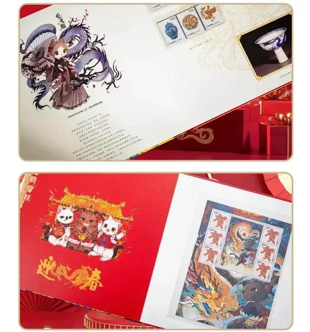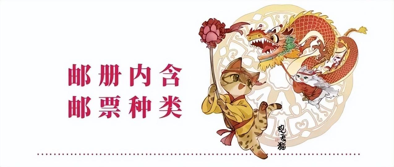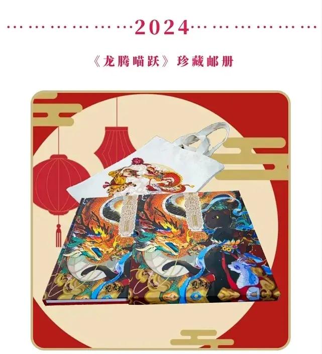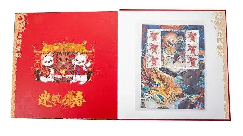 2024,辰龍獻瑞,觀復博物館旗下IP觀復貓聯合中國集郵,特推出2024年甲辰龍年紀念郵冊——2024《龍騰‘喵’躍》珍藏郵冊