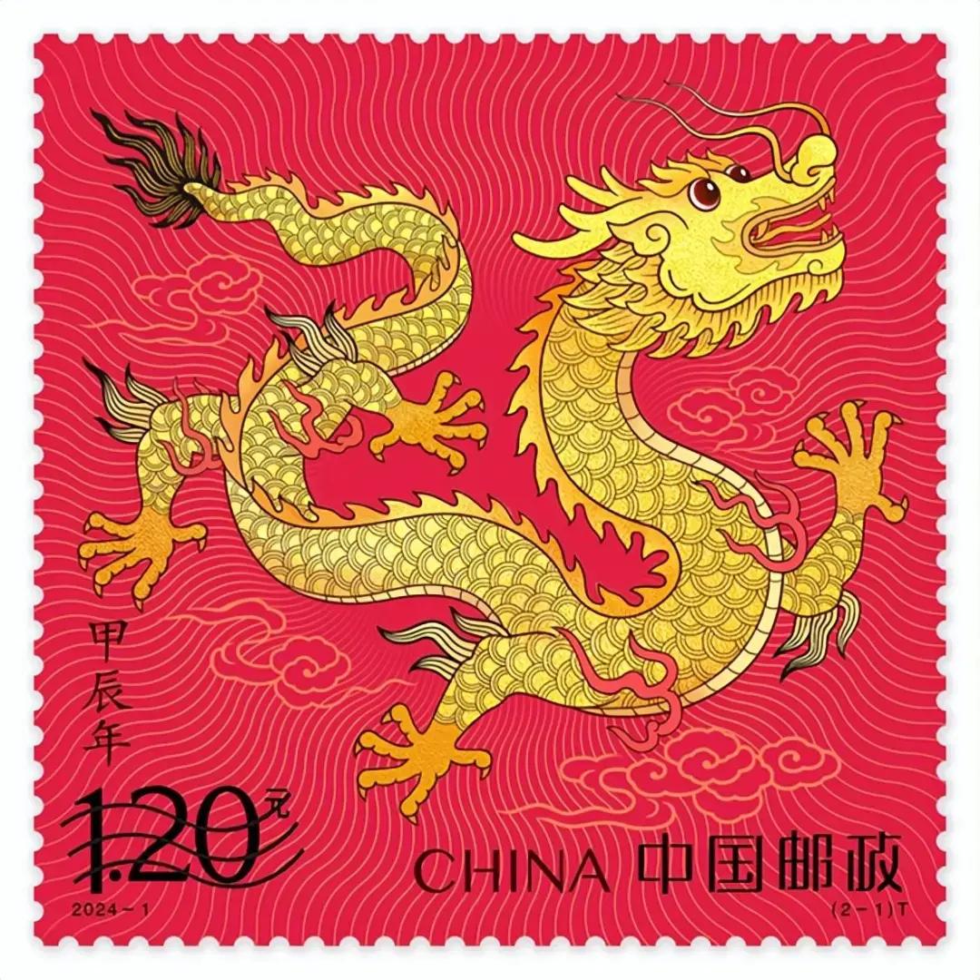 而和故宮九龍壁同樣火熱的,還有今年1月5號中國郵政發售的2024-1《甲辰年》生肖龍特種郵票。
