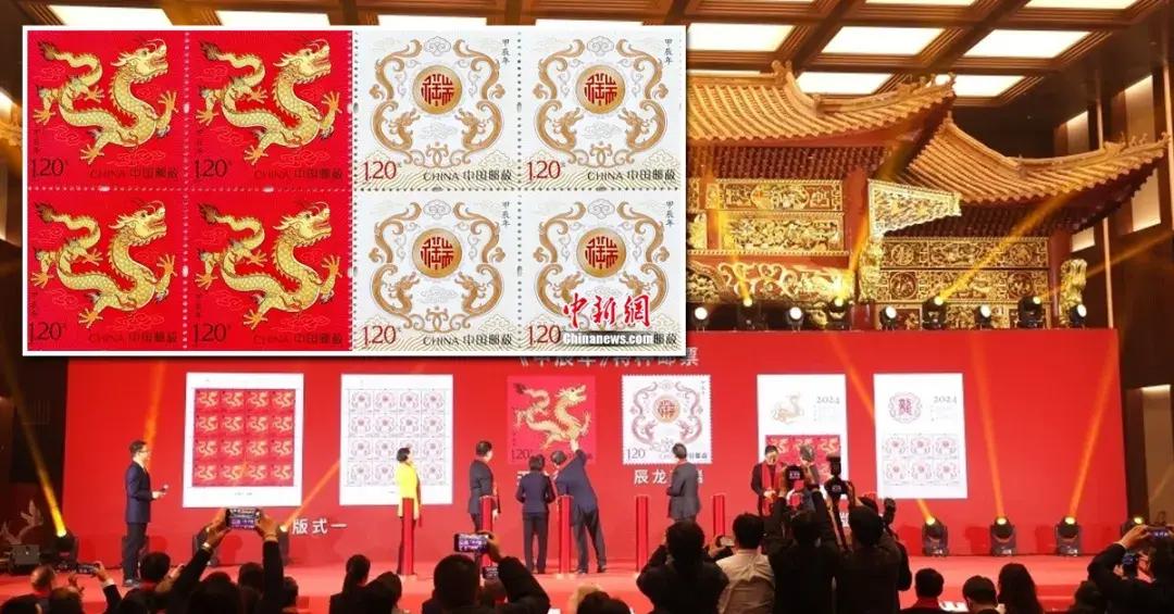 ▲2024-1《甲辰年》特種郵票圖樣發佈現場,圖源中新網;