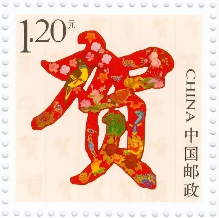 個性化郵票《賀》以賀字爲主圖,並以多種字體形式的賀字作爲主圖背景,其中主圖“賀”字通體選用代表喜慶的紅色,並由喜鵲、金魚、花卉(梅花、蓮花、牡丹、桃花)、竹子、桃子、如意、祥雲等圖案填充而成,使得主圖賀字寓意廣泛。郵票中央以觀復貓“龍騰喵躍”主題插畫抓裝飾,祥龍呈瑞,好運連連。