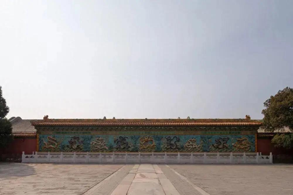 這塊位於紫禁城寧壽宮區皇極門外的九龍壁,壁長29.4米,高3.5米,厚0.45米,是一座背倚宮牆而建的單面琉璃影壁,爲乾隆三十七年(1772年)改建寧壽宮時燒造。