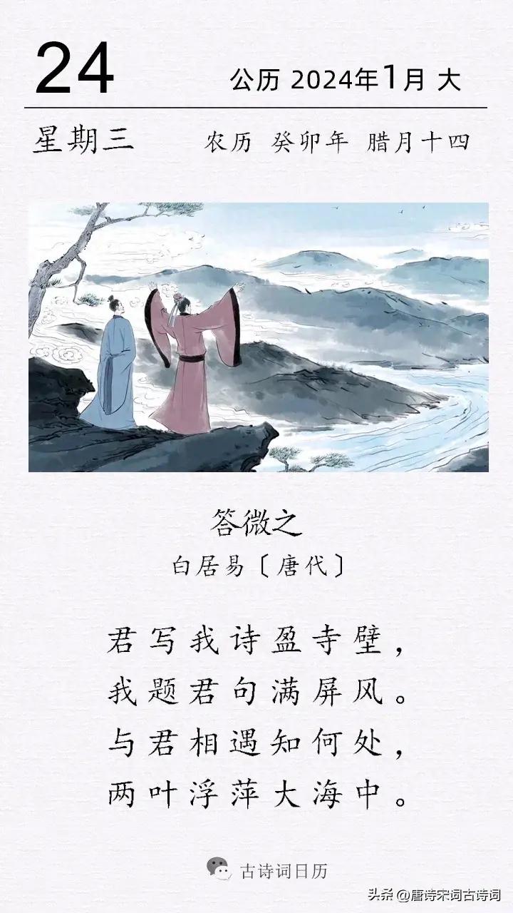 “與君相遇知何處,兩葉浮萍大海中。”如今,在哪裏才能與你相遇呢?恐怕只能在詩文中相遇了。我們二人就像漂浮在大海上的兩葉浮萍,到底何時才能相見呢?這兩句,一則表達了對元稹的思念之情,二則渴望再次與友人相聚,三則表達了珍惜友情之意。茫茫人海,能夠遇見就是一種緣分,何況還相知,情投意合呢!