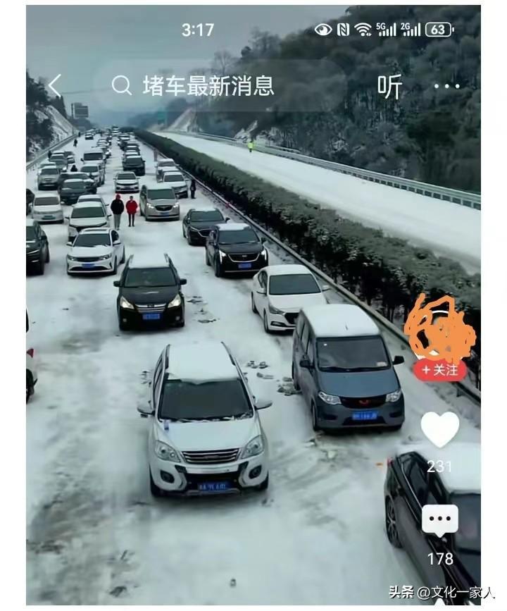 高鐵停運,高速封路,大批迴鄉過年的人被堵在冰雪路面上動彈不得。連續幾天,喫喝拉撒都成了問題。