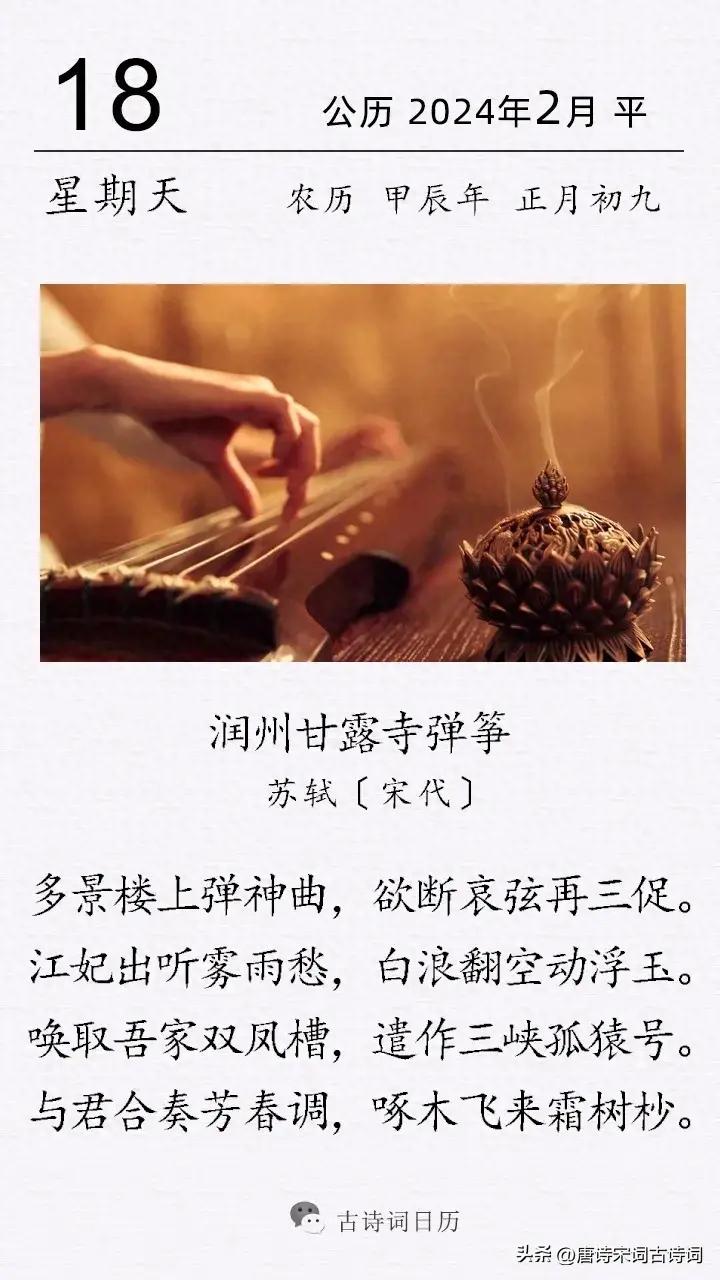 “多景樓上彈神曲,欲斷哀弦再三促。”首聯是說,我們在多景樓上,彈奏一支神曲,琴聲哀婉悽清,再三催促,琴絃彷彿欲斷。這是寫“彈奏之地點”。彈奏地點在多景樓,蘇軾彈奏的是古箏,而官妓胡琴彈奏的是琵琶,二人合奏,哀轉動聽,絕似《琵琶行》。
