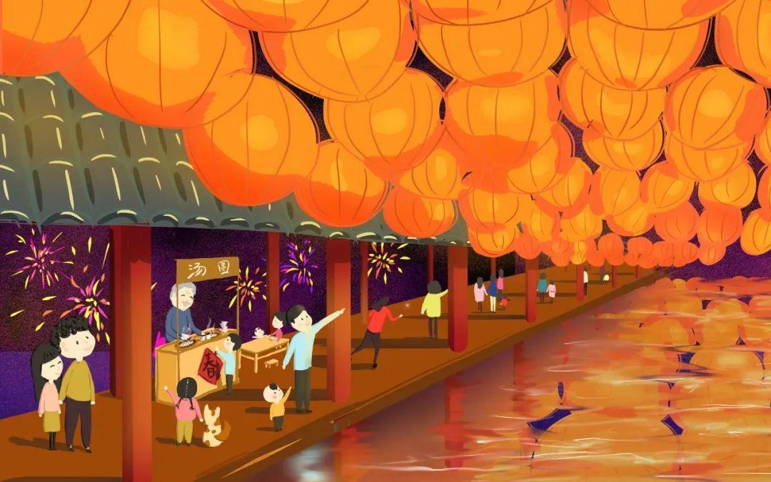 人間團圓,喧鬧達旦,藉着萬家燈火,人們猜燈謎,賞花燈,滾元宵,包湯圓,萬里長街,星河傾瀉。