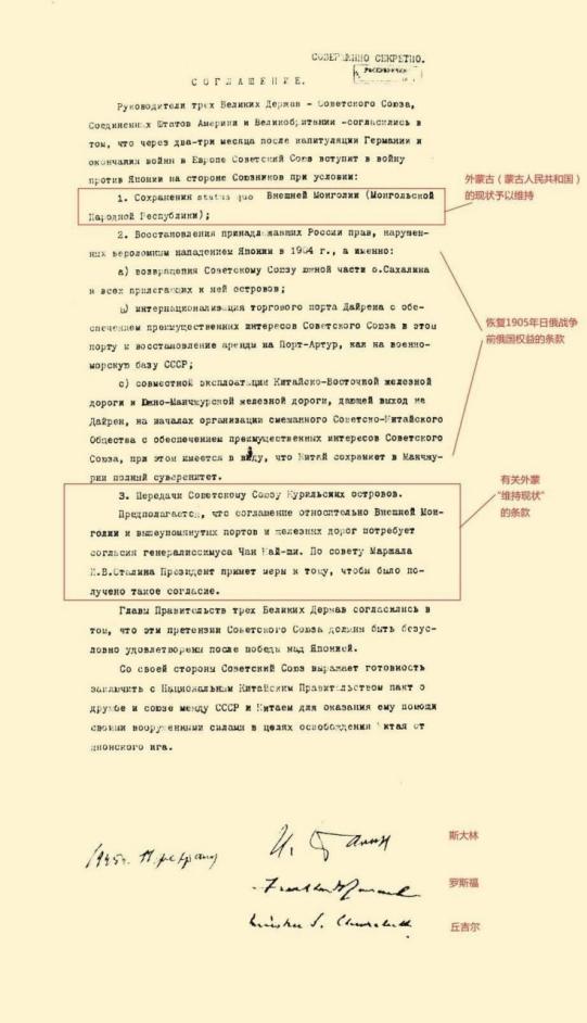 而且,雅爾塔體系讓我們喪失了外蒙古,因爲沙俄勢力的滲入,外蒙古宣佈獨立。後來外蒙古的發展實際上受限於蘇聯的,而雅爾塔體系卻沒有將屬於我們國家的外蒙古歸還,反而讓其保持現狀。這就意味着,這個體系讓我們喪失了外蒙古的領土。