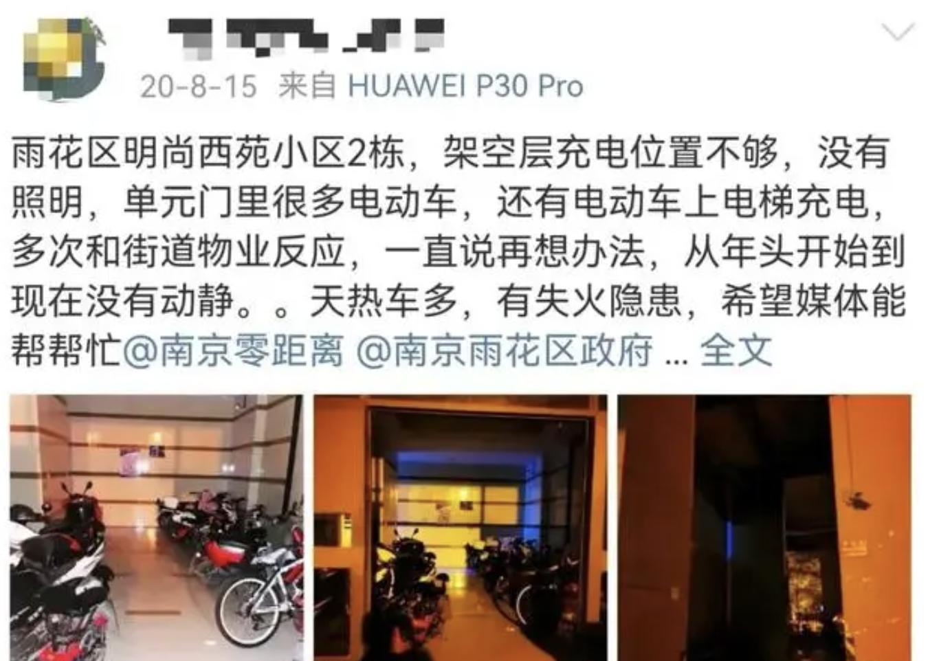 據當地的居民回憶,之前小區的架空層並不是用於充電的地方,但由於明尚西苑都是安置房,有很多外地來的住戶,因此小區裏的電動車幾乎都是滿滿當當,大家沒地方充電,就每次都把電動車扛回家充電。
