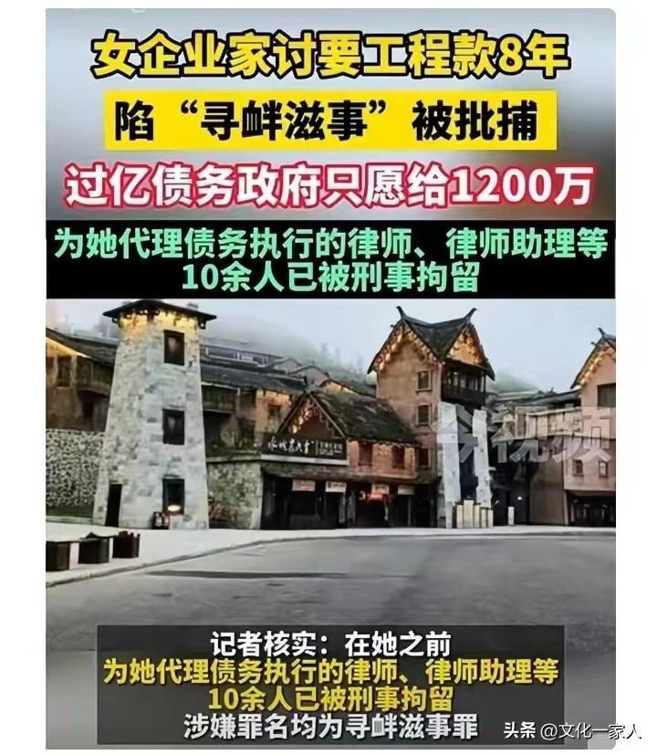 據《中國經營報》報道,貴州六盤水的一位少數民族女企業家馬某,因討要工程款竟然被以尋釁滋事罪批捕,包括她聘請的律師及助理也被刑事拘留。