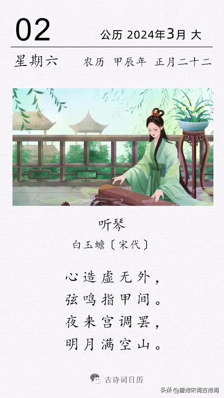 這是宋代詩人白玉蟾的一首聽琴詩。
