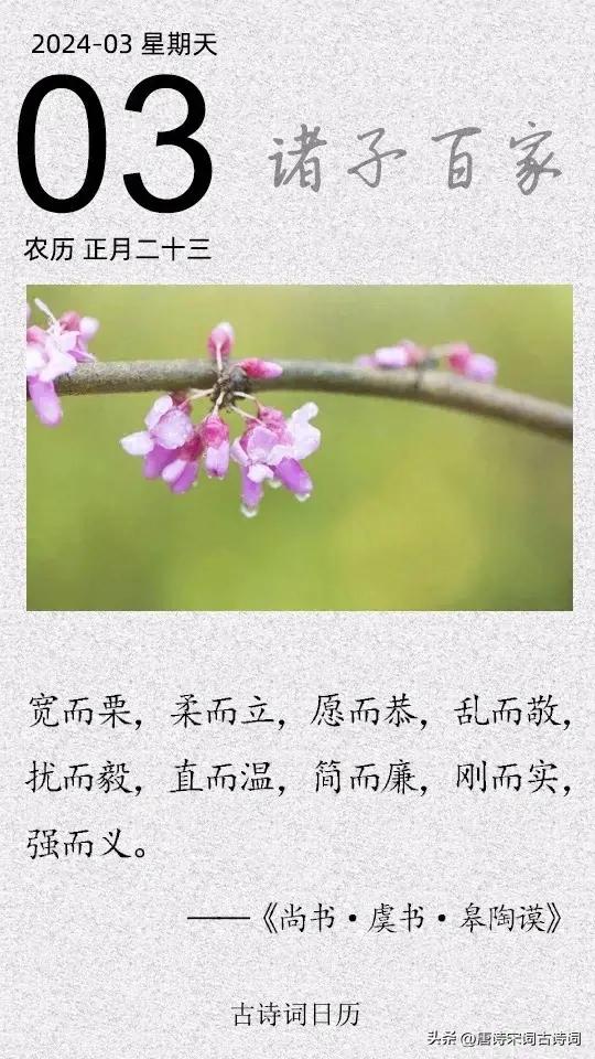 君子有九德,寬而慄,柔而立,愿而恭,亂而敬,擾而毅,直而溫,簡而廉,剛而實,強而義。這九德是對舜帝提出的“直而溫,寬而慄,剛而無虐,簡而無傲”一種詳細補充。
