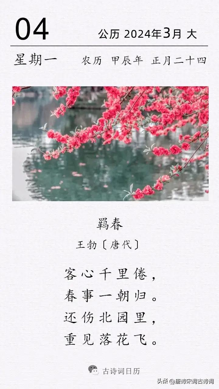 羈春,就是滯留在春天,難以歸家。鄉愁,往往在春日與秋日最爲濃烈。他的另一首《山中》,“長江悲已滯,萬里念將歸。況屬高風晚,山山黃葉飛。”寫秋日鄉愁詩,且韻腳一致,可視爲鄉愁“雙璧”。