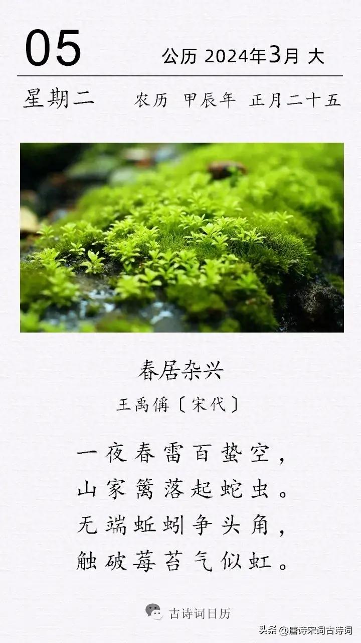 這是宋代詩人王禹偁的一首驚蟄節氣詩。
