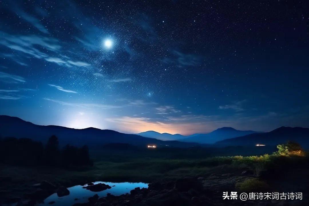城南的風景,已然是春日模樣。春水迢迢不斷,水平面不斷上漲,湖心的亭子,被春水包圍,周圍白茫茫一片,只有孤月相伴,更顯春愁無限。