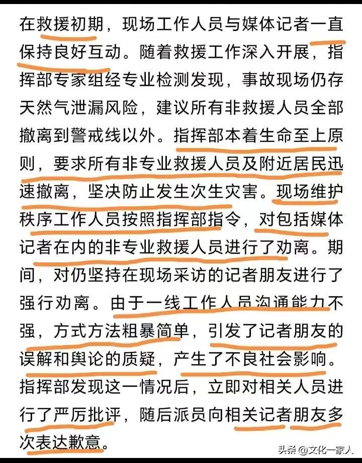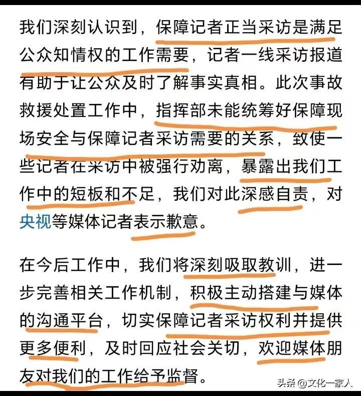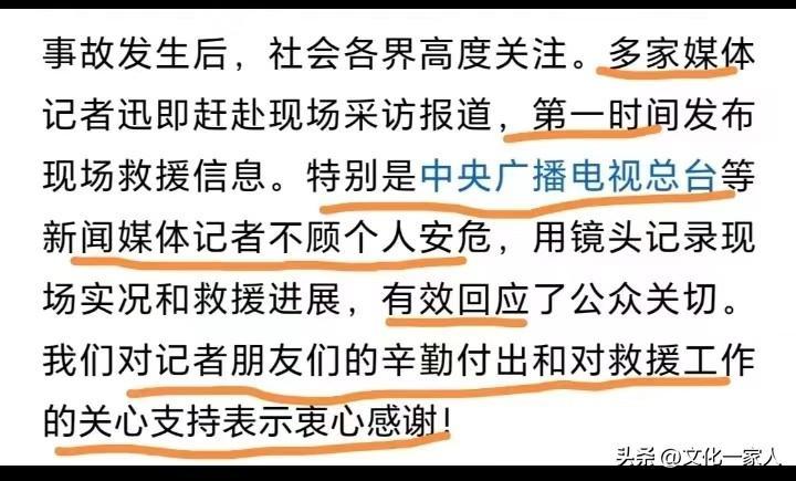 事故發生後,多家媒體趕赴現場,不顧個人安危用鏡頭記錄實況和救援進展,有效回應了公衆關切。我們對記者朋友的辛勤付出和對救援工作的關心支持表示衷心的感謝!