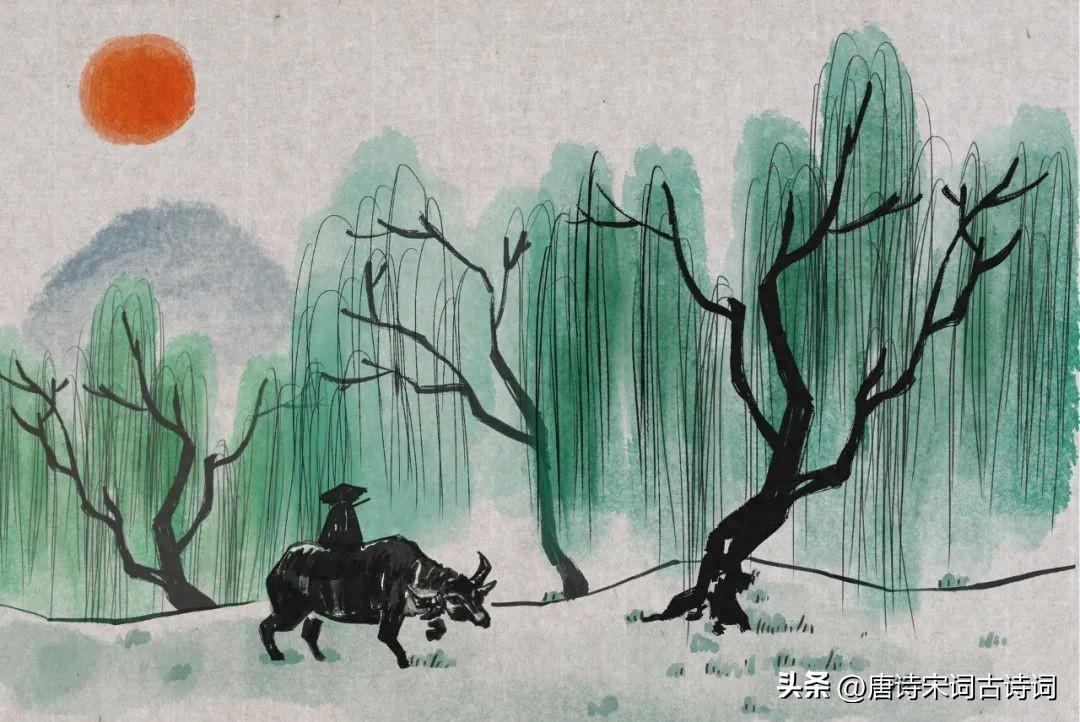 青青村落幽靜,農家生活恬淡。詩人躲雨路過的小村莊,是春天的桃花源。