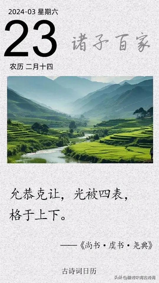 “允恭克讓”,不僅是帝堯偉大人格的一種彰顯,也是萬世模仿的楷模。孔子提出“溫良恭儉讓”,帝堯就佔了兩條“恭”“讓”。作爲我們普通人,得此二字,亦是通往成功之路的重要品質。謙恭遜讓,卑以自牧,萬民歸心,大事可成矣!