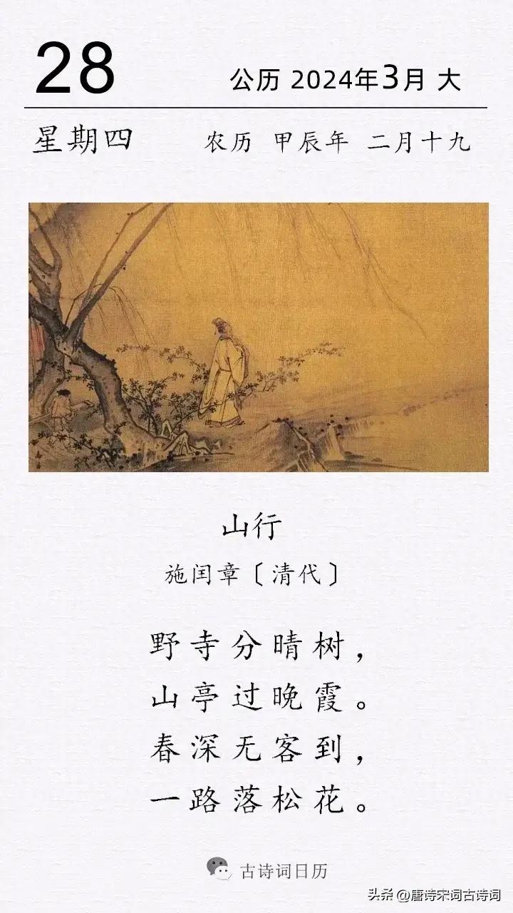 春深,無疑是登山踏青的好時節。錯過,要等一年。春山、春花、春寺、春茶、溫泉、春食,一切都那麼詩意盎然,令人神往。那麼,如果沒有知音,一個人可以獨自去被形容爲極樂世界的春山嗎?施閏章告訴我們,一個人也是可以的,也並沒有想象中那麼孤單,他的筆下,我們讀到了一個人的自由自在與無拘無束。