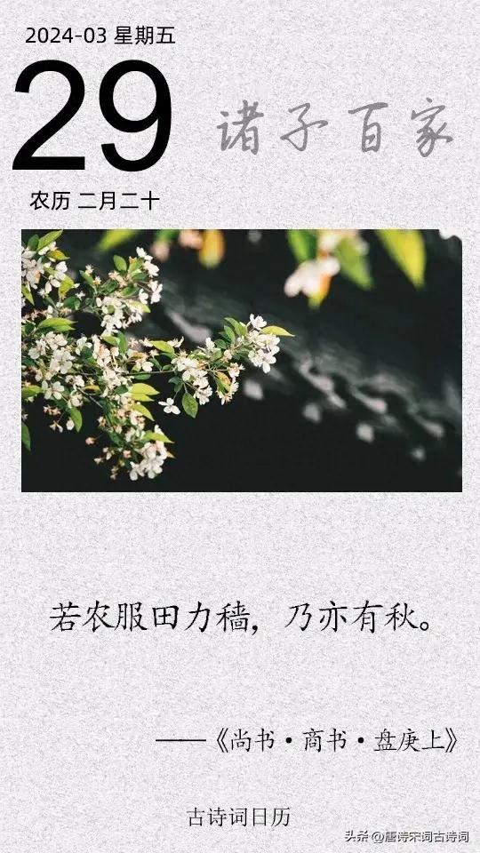 這裏盤庚講了兩句著名的話,也是再給遷都打氣。第一句話是:若網在綱,有條而不紊。意思是就像網上有一根總繩,這樣在提網時才能很有條理而不會紊亂。這是告誡我們做事要抓住重點。要不要遷都,肯定要,因爲躲避水災是重點。竟然確定了遷都的重點,那麼下一句話也就來了,就是我們今天要學的這一句,“若農服田力穡,乃亦有秋。”意思是,如同農民從事農業生產,只有努力耕種,纔會大有收成。這一句重點落在努力奮鬥上。