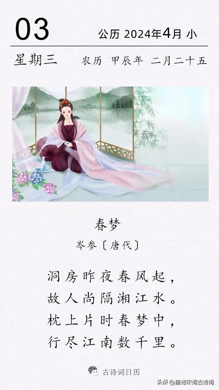 因爲春風到來,因爲思念友人,所以纔會做起了春夢。春夢,往往被視作繾綣美好的象徵。它就像是一片雲煙輕輕飄過,又像一灣溪流汩汩流淌。而夢中人,則更加美好,是生命的知音,是靈魂的共鳴。春風、春水、春夢,如一幅絕美的水墨畫,盡情展示着唯美詩意的春日江南。
