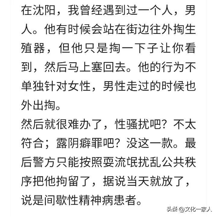 那個經常往外掏生殖器的男人,雖然被抓起來了,但人家是精神病患者。