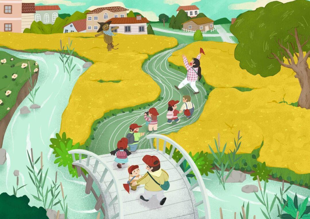 小隊出遊春色裏,滿蹊花朵正娟娟。