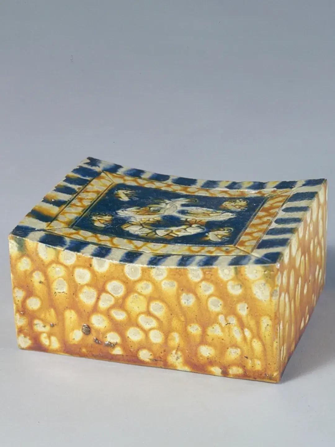 唐 三彩加藍刻花鴛鴦紋枕 故宮博物院藏