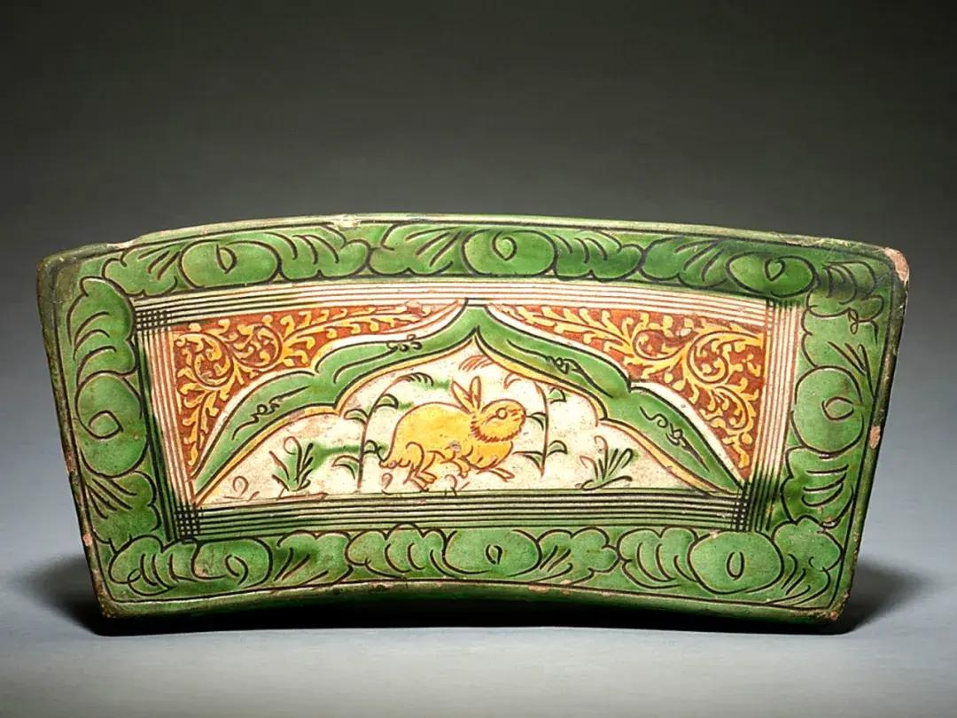 宋 三彩刻劃兔紋扇形枕 故宮博物院藏