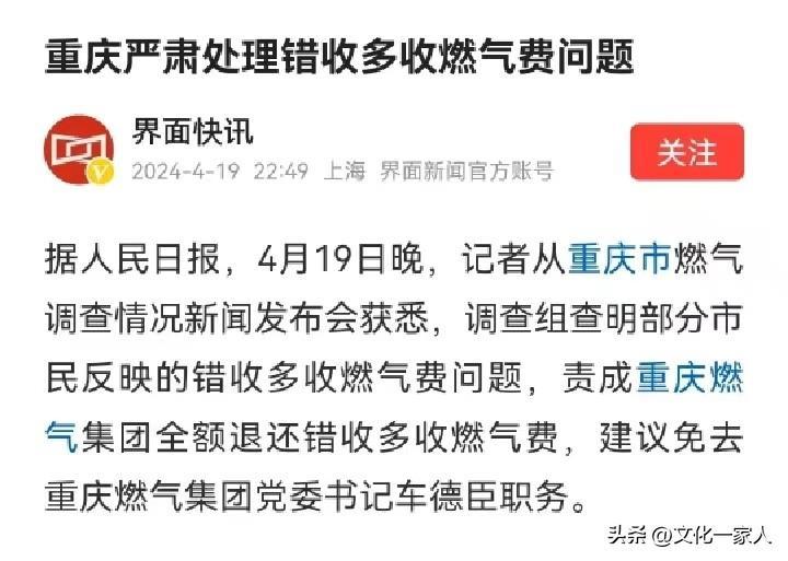面對人神共憤的重慶燃氣,其最早的回應是,因各種原因導致收費確實有誤的,將督促企業退還。