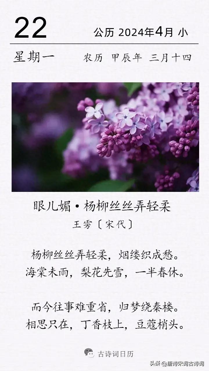 王雱《眼兒媚·楊柳絲絲弄輕柔》