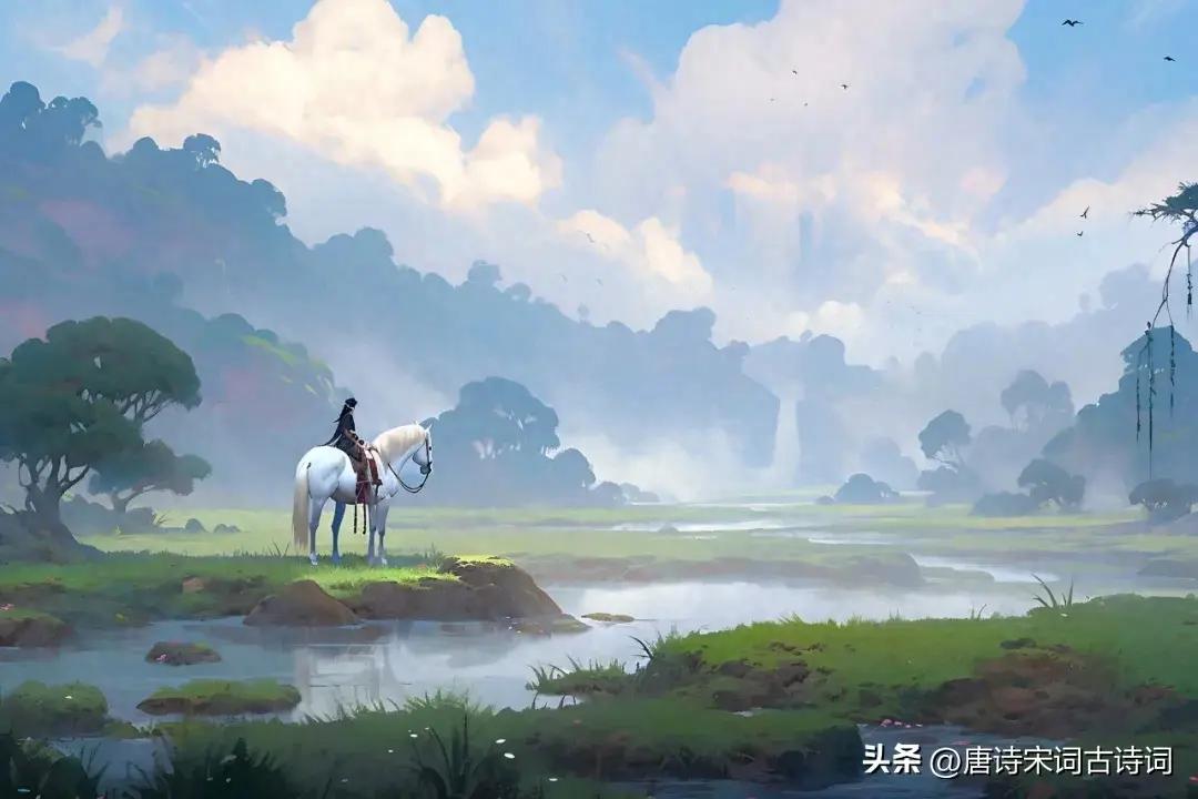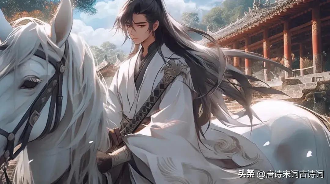 裝飾金色籠頭的高頭白馬,威風凜凜。騎馬揚起漫天飛塵的,是幽州幷州的遊俠。七尺男兒志在報國,從小就離開家鄉,邊塞殺敵立功。