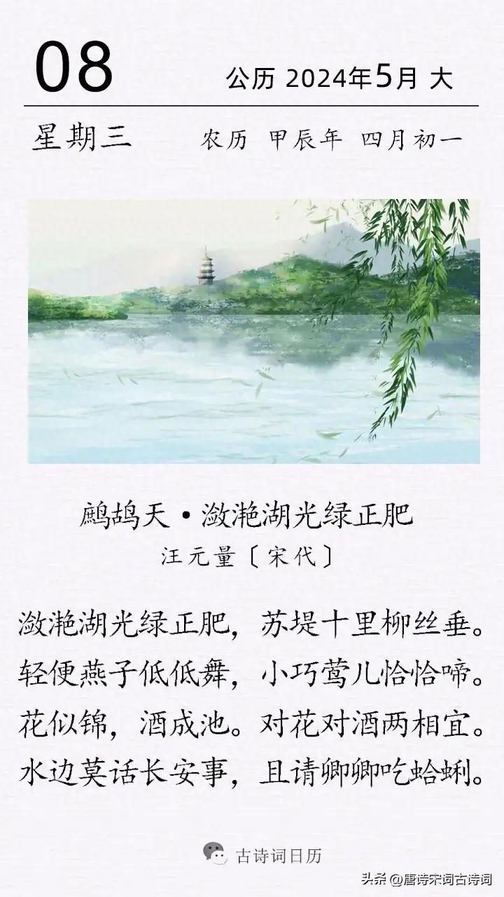 汪元量《鷓鴣天·瀲灩湖光綠正肥》