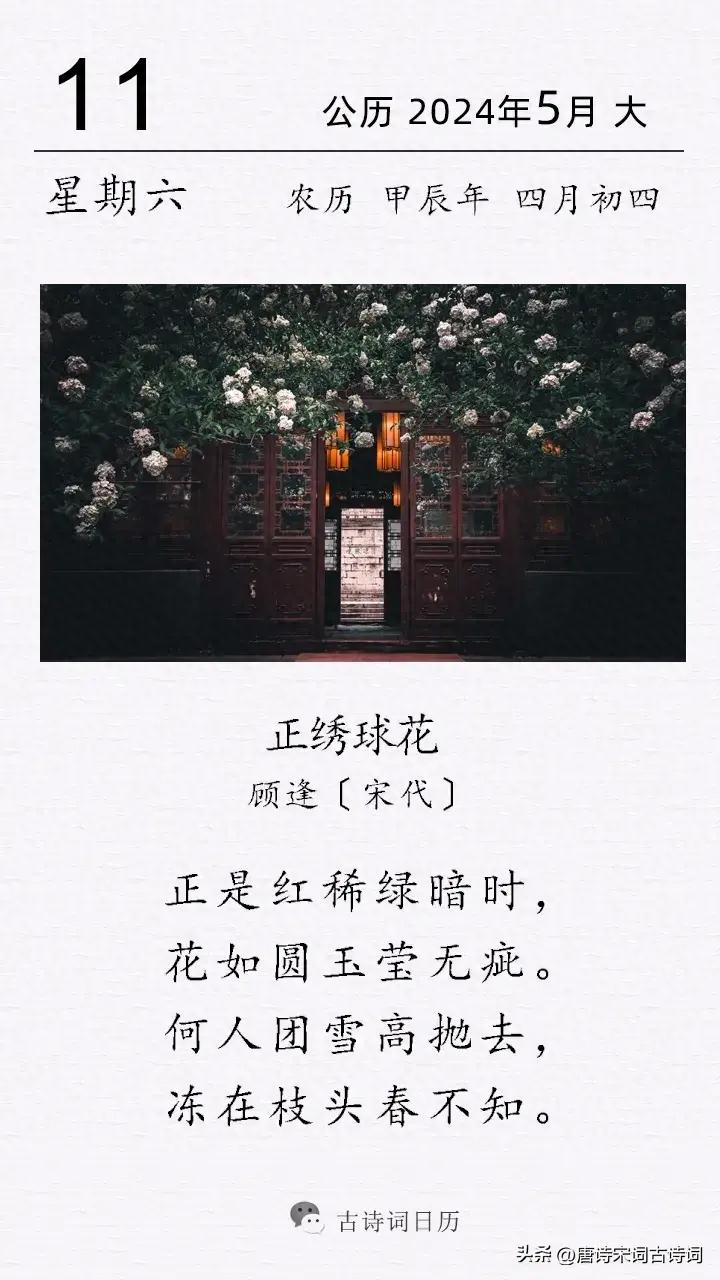 這是宋代詩人顧逢的一首詠繡球花詩。