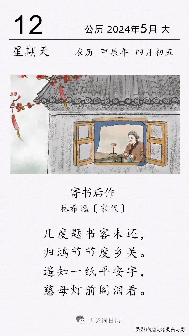 今天是母親節,賞讀這首詩正逢其時。俗話說得好,“兒行千里母擔憂。”孩子出門在外,能夠知道平安的消息,無疑是家中母親最開心的事情。這首詩正是抓住了這個心理,寫出了母親對於孩子的牽掛。