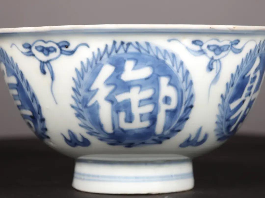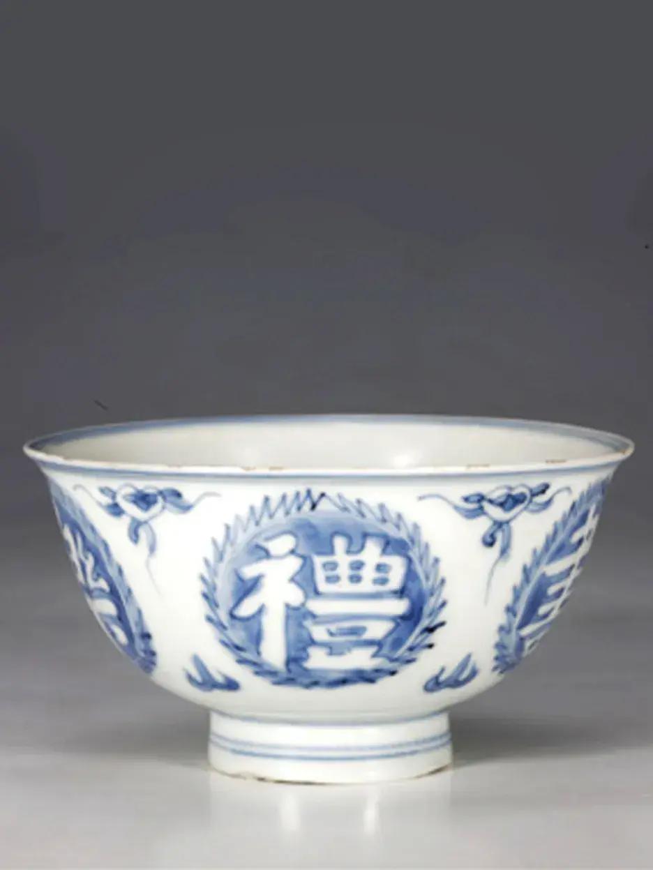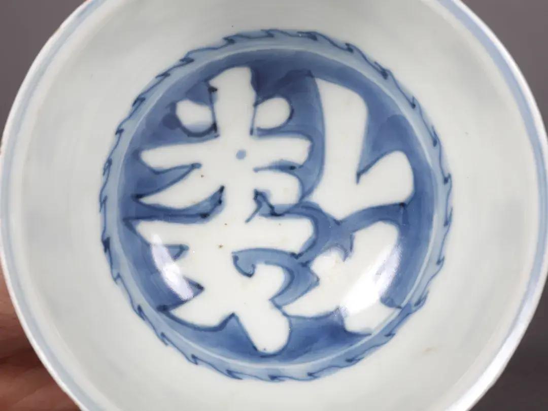 在古代瓷器中,以文字爲裝飾的器物不多見,且此碗爲反白字,可見設計之妙。