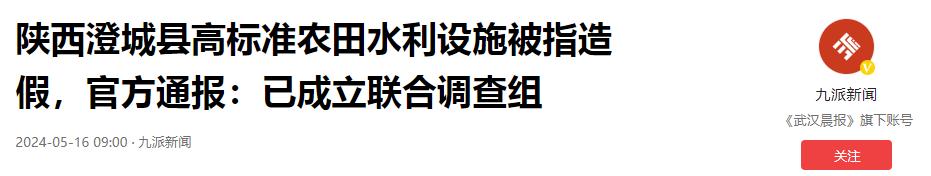 九派新聞《陝西澄城縣高標準農田水利設施被指造假,官方通報:已成立聯合調查組》